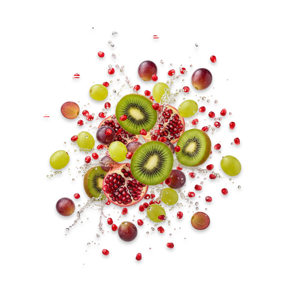 Kiwis, raisins et grenades apportent une dose de vitalité et de fraîcheur pour un smoothie équilibré et plein d’énergie.