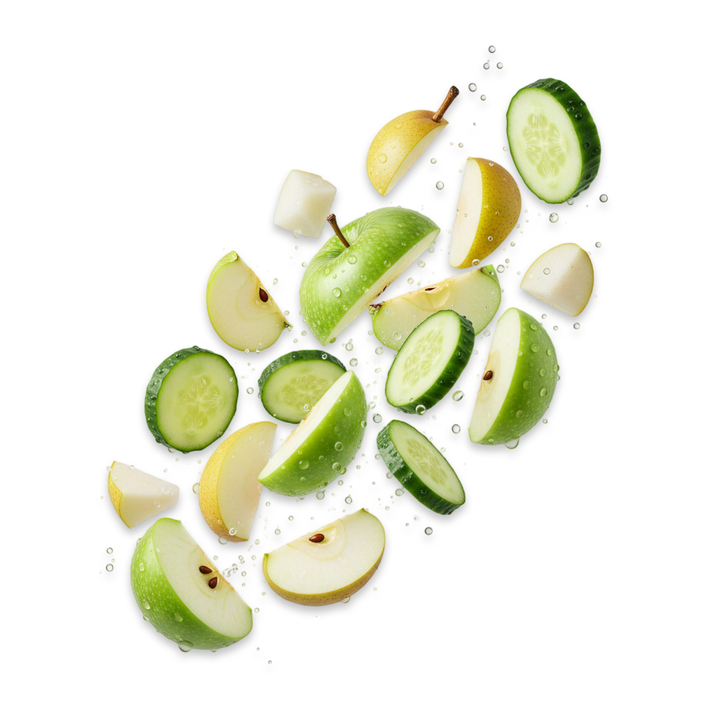 Pomme verte, poire et concombre : une combinaison légère et rafraîchissante, parfaite pour purifier et se sentir bien.